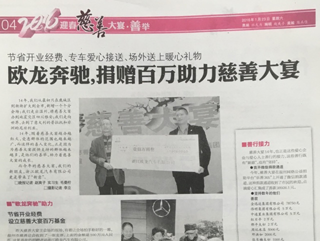 浙江歐龍奔馳,捐贈百萬助力慈善大宴...